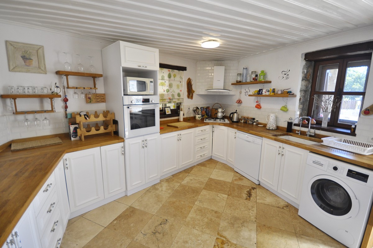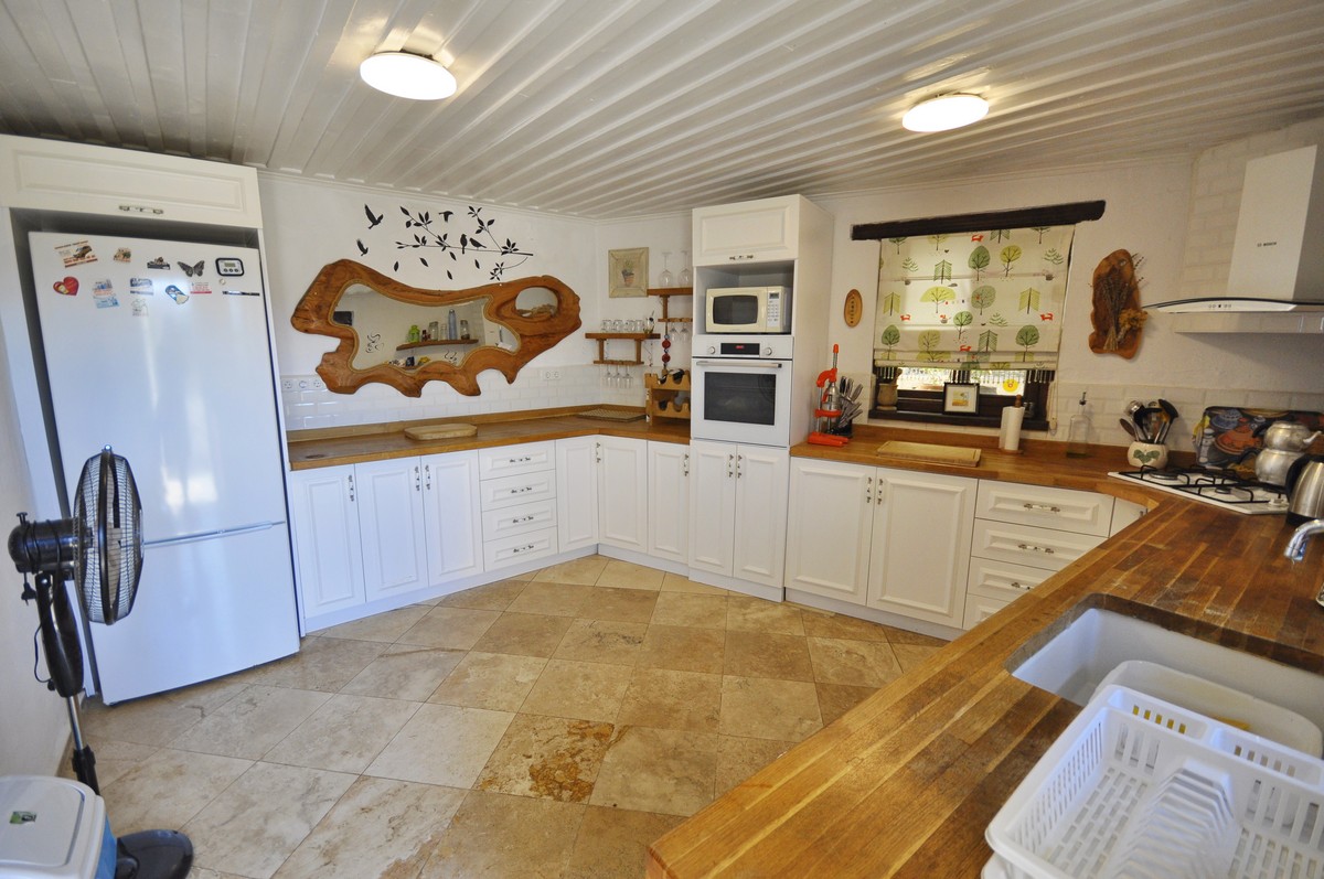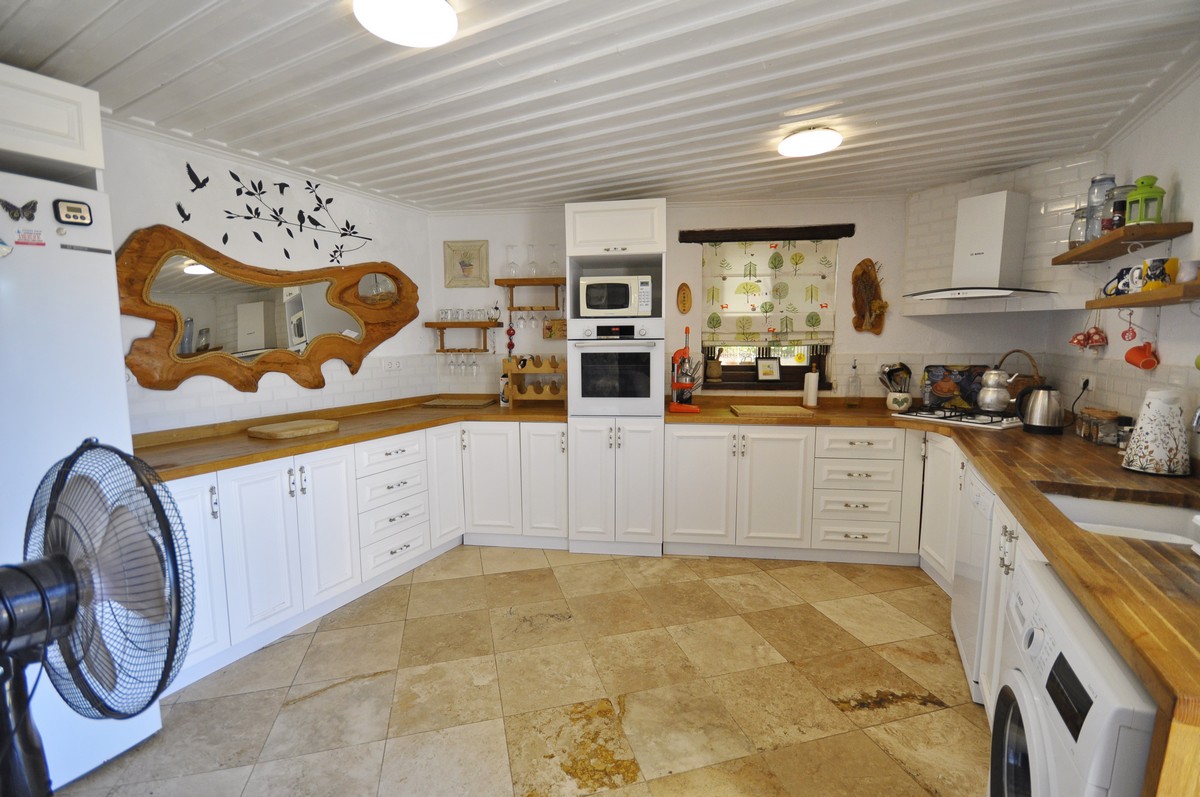 The villa is equipped with double-glazed wooden windows, shutters, solar panels for hot water, and new electrical installations. The upper section can be used as a self-contained apartment if desired.