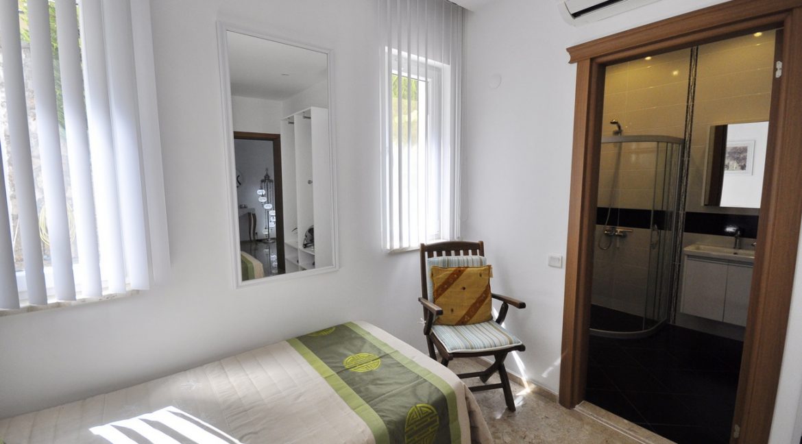 Ground Floor – Entrance hall with fitted wardrobes , large , airy and bright lounge area , front terrace overlooking the private swimming pool , Ovacik valley , Oludeniz and Fethiye sea views. There is also family bathroom on this floor.
