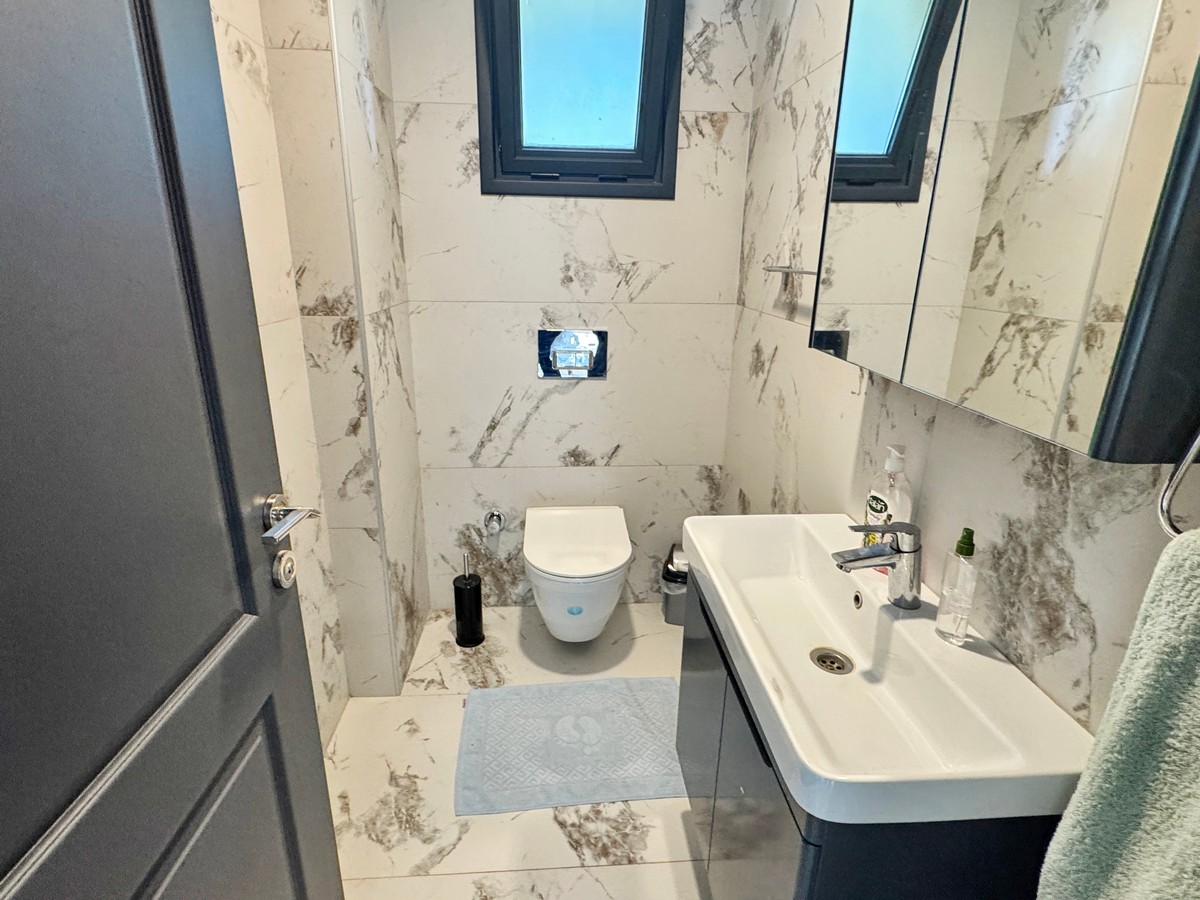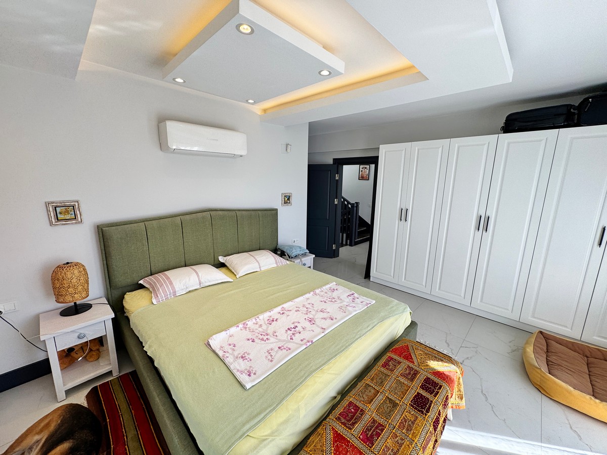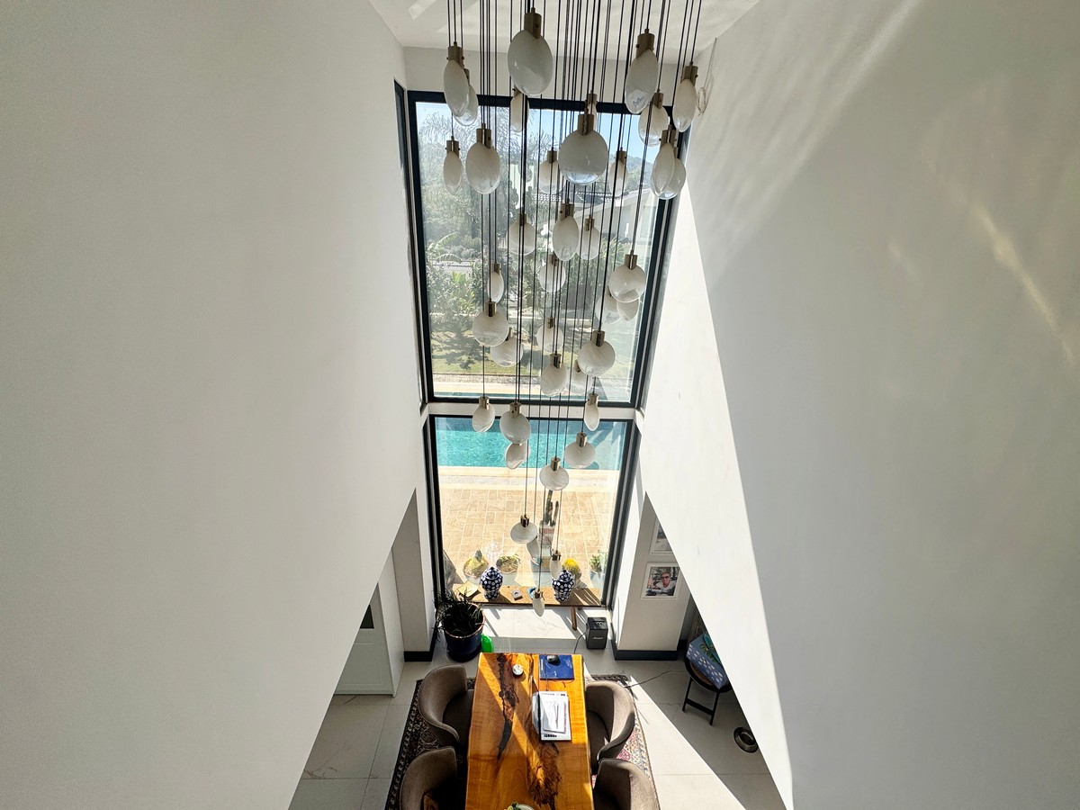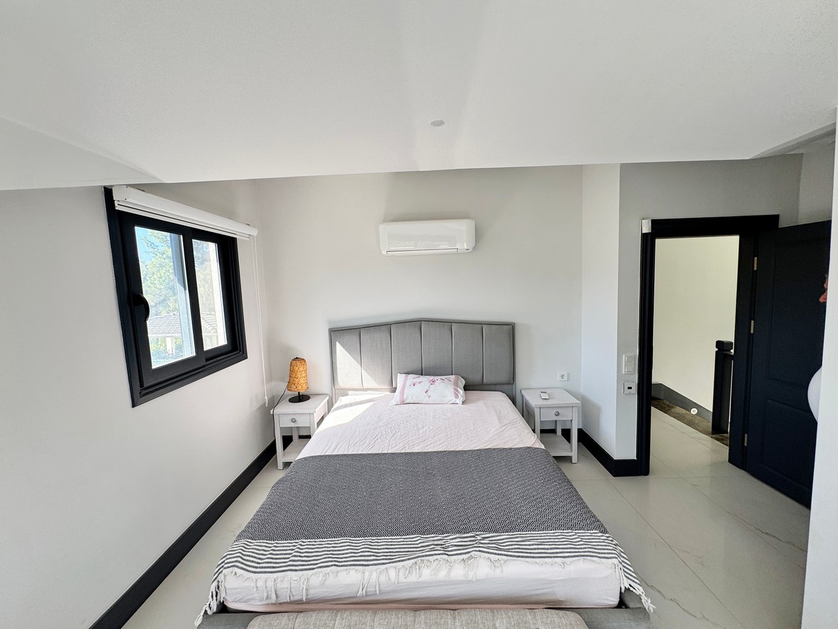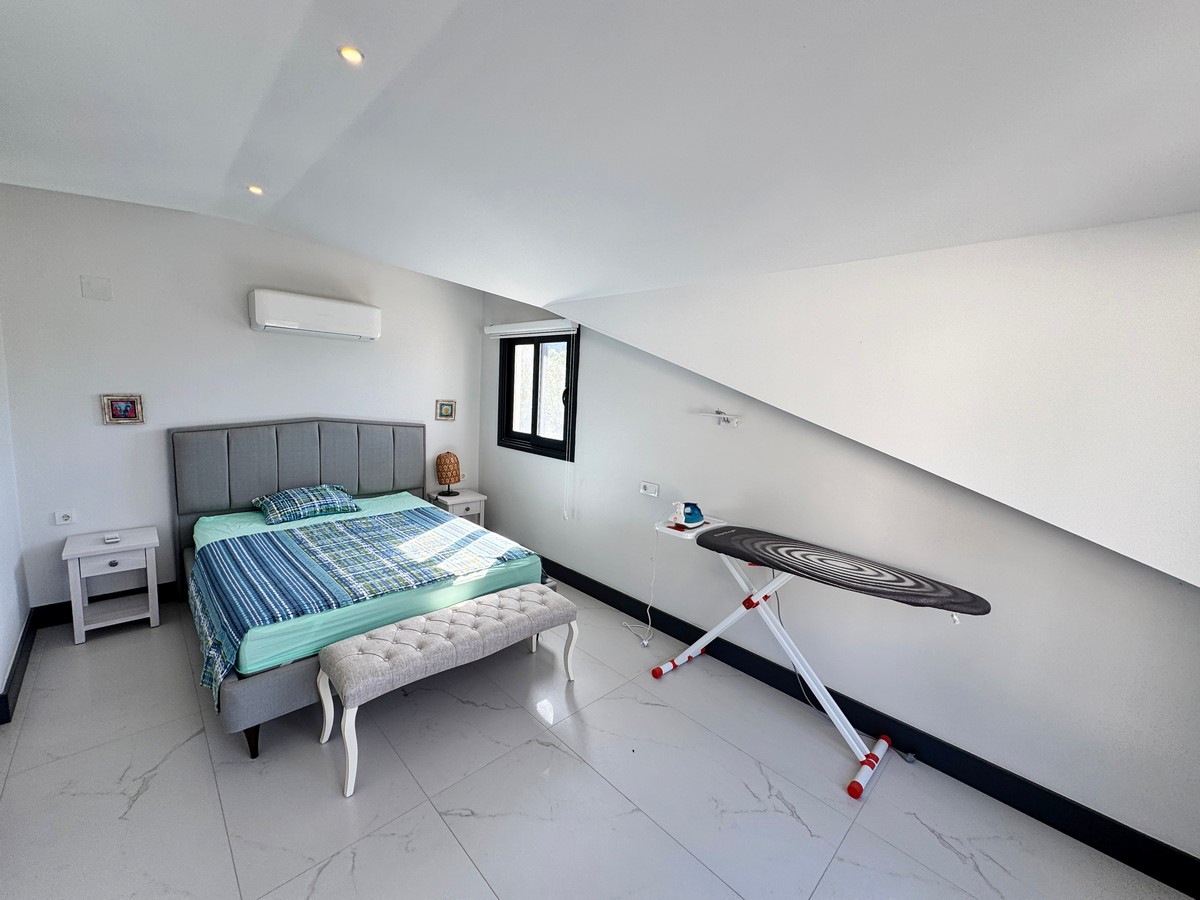 Upstairs, you’ll find two large en-suite bedrooms, each with its own private balcony overlooking the lush greenery and sea. The top floor includes two additional en-suite bedrooms, both opening onto private terraces for peaceful moments under the sky.