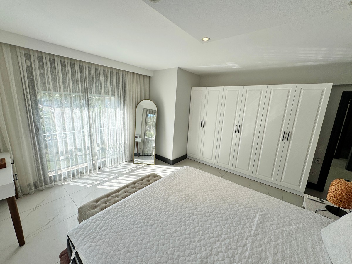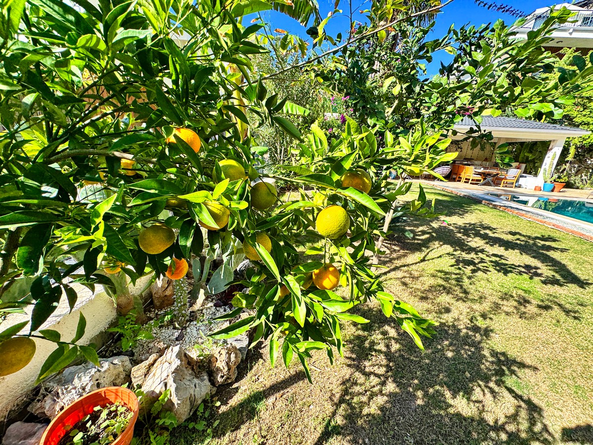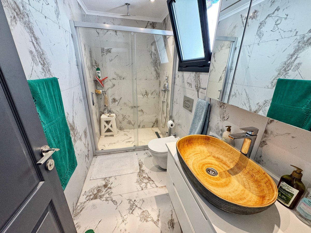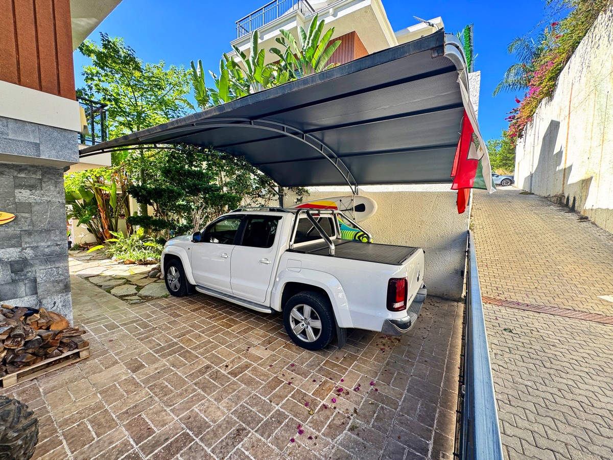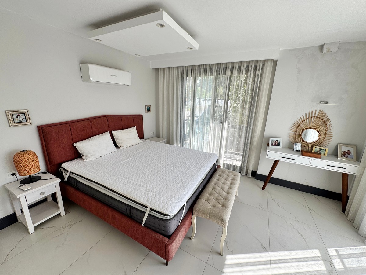 Upstairs, you’ll find two large en-suite bedrooms, each with its own private balcony overlooking the lush greenery and sea. The top floor includes two additional en-suite bedrooms, both opening onto private terraces for peaceful moments under the sky.