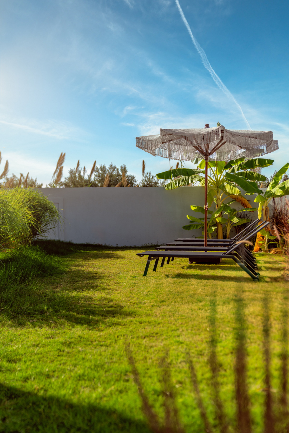 Ground floor: Bright and spacious living room, fully equipped open-plan kitchen, direct access to the pool terrace and garden via sliding doors, first bedroom with en-suite bathroom, dressing room, and enclosed balcony with glass.