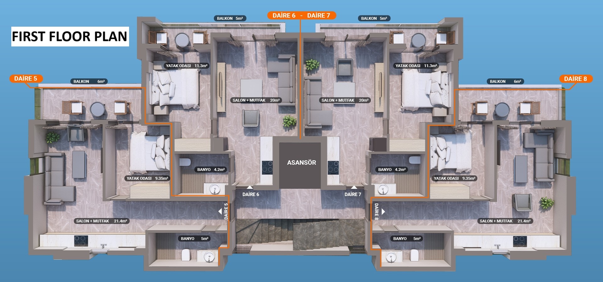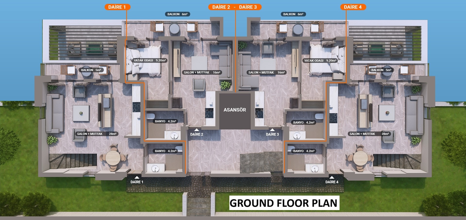 Located just off the Oludeniz road in Fethiye, this brand new boutique development consists of only 6 apartments, offering an exclusive lifestyle opportunity with panoramic sea and city views. Each apartment is designed with modern architecture, built using premium materials and top-quality craftsmanship, making it ideal for both residential use and investment.