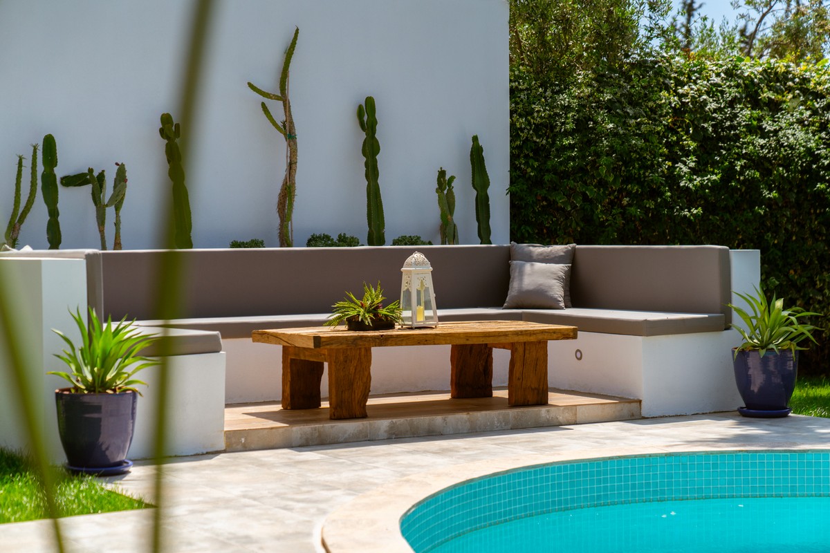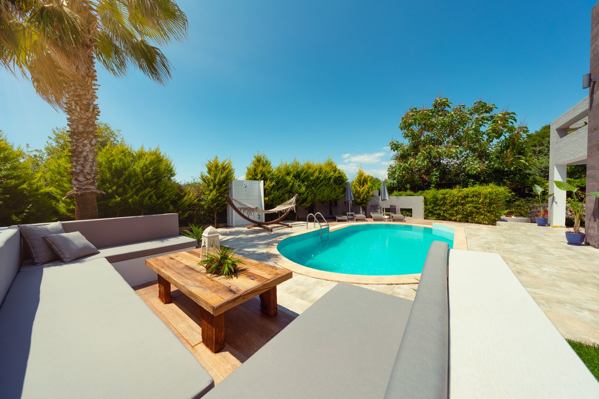 Villa has its own private pool surrounded by a tiled sun bathing terrace and with poolside shower. The garden is landscaped with grassed areas and a number of flowers and trees.There is a BBQ, table tennis, pool table , hammock and out side alfresco dining area. There is a secure private driveway.
