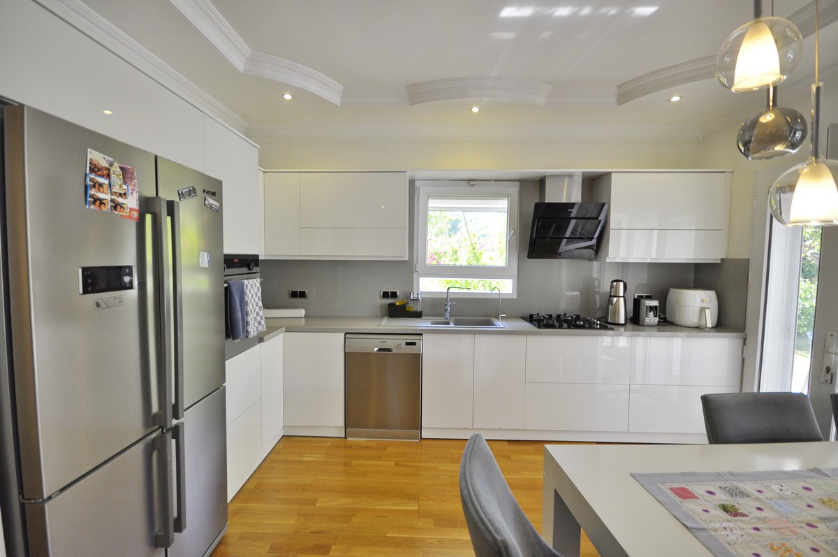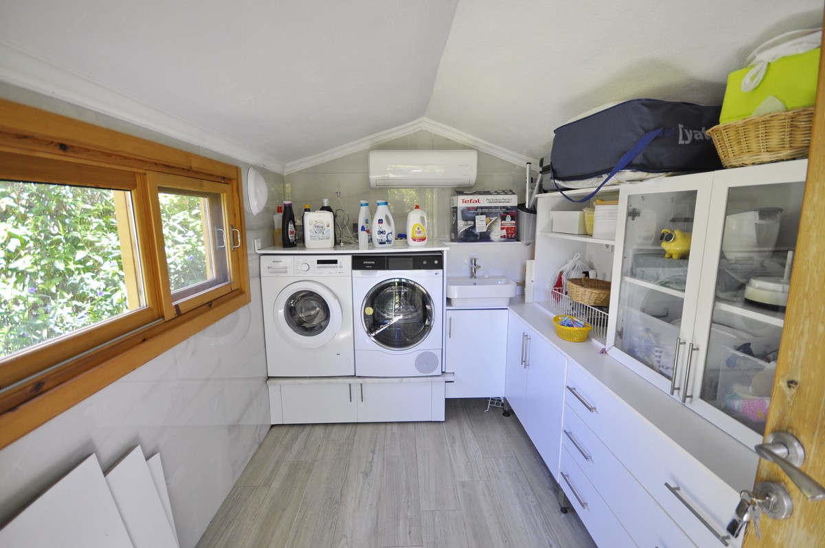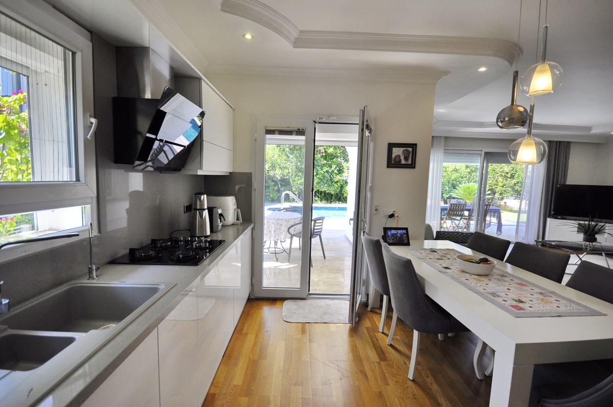 На участке площадью 515 м² расположена ухоженная вилла с общей жилой площадью 200 м², которая продаётся полностью меблированной (за исключением телевизора и личных вещей).
