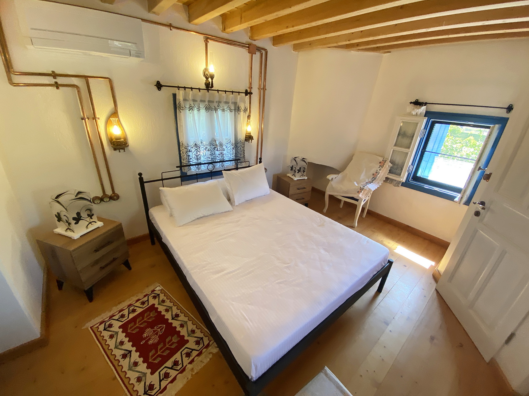 Dubleks taş ev , ana girişten, ofset mini mutfaklı küçük, açık plan tasarımlı bir oturma odasına girmektedir. Tam donanımlı mutfakta rahatlatıcı bir şömine ve klima ünitesi bulunan oturma odası bulunmaktadır. Doğal ahşap bir merdiven, çift kişilik yatak odasının bulunduğu birinci kata çıkmaktadır. Yatak odasının geniş bir balkona erişimi vardır. Bir de banyo bulunur.
