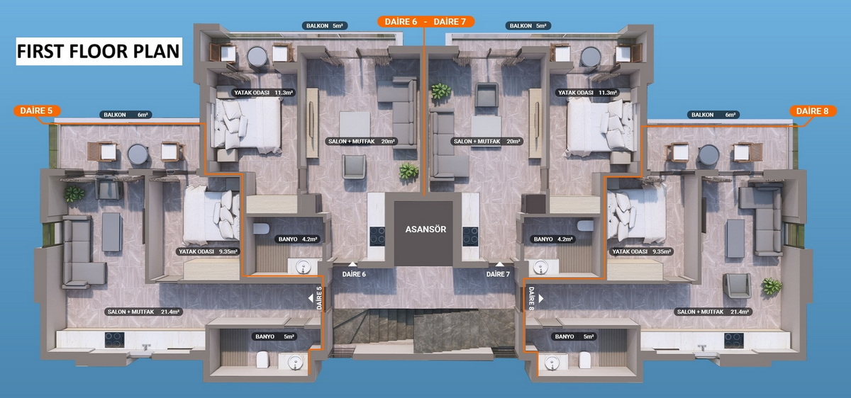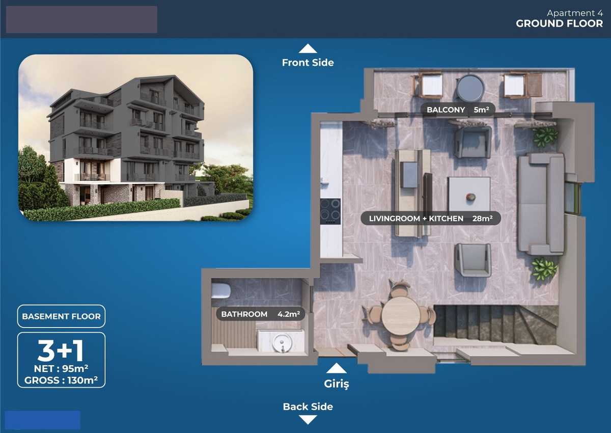Fethiye – Ölüdeniz yolu üzerinde konumlanan bu modern ve butik projede, sadece 6 özel daire yer almaktadır. Projede yer alan 2 adet 3 yatak odalı dubleks daire, hem yaşam hem yatırım açısından kaçırılmayacak bir fırsat sunmaktadır. Deniz manzarası, yerden ısıtma sistemi, asansör ve birinci sınıf malzeme kalitesi ile tasarlanan bu daireler, konforu ve zarafeti bir araya getiriyor.