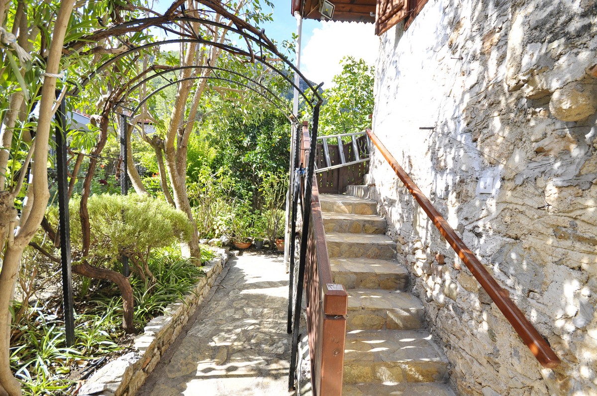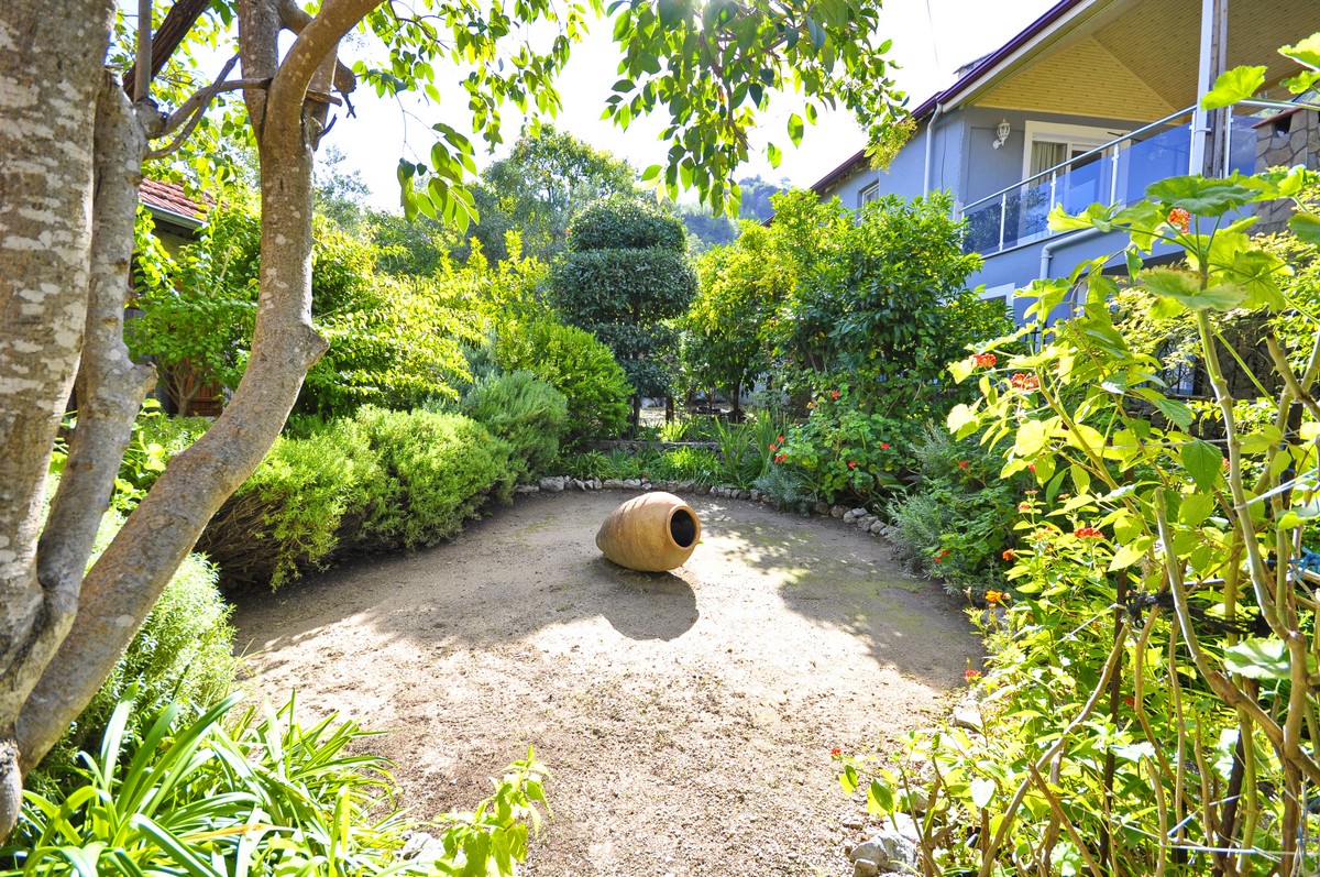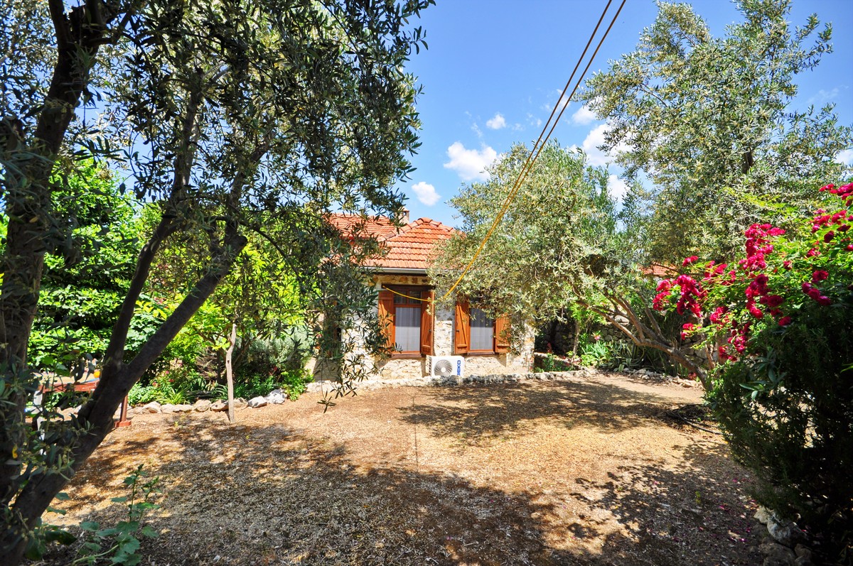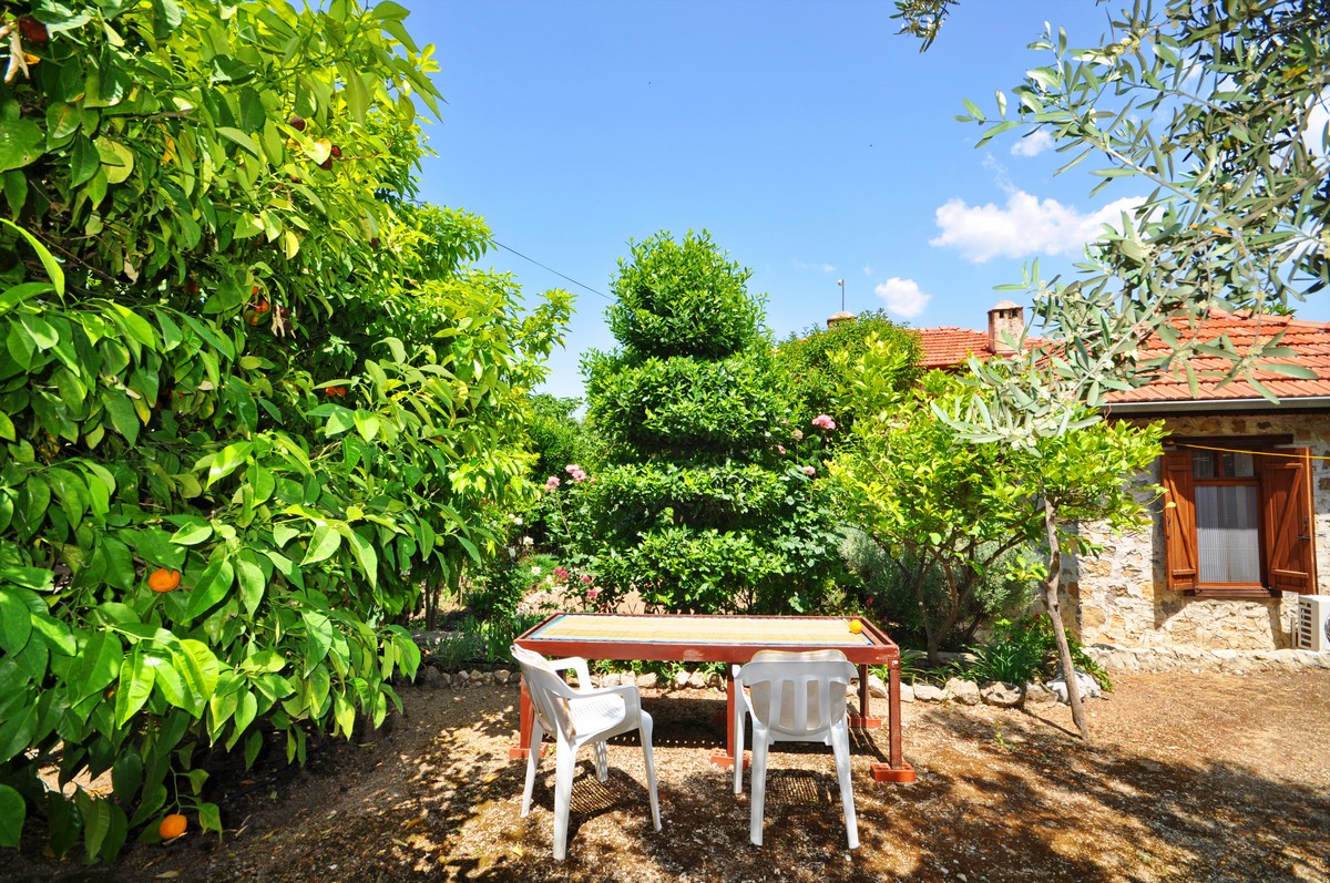 Ev, meyve ağaçları ve renkli çiçeklerle dolu özel bir bahçe ile çevrilidir; dinlenmek veya misafir ağırlamak için mükemmel bir alandır.