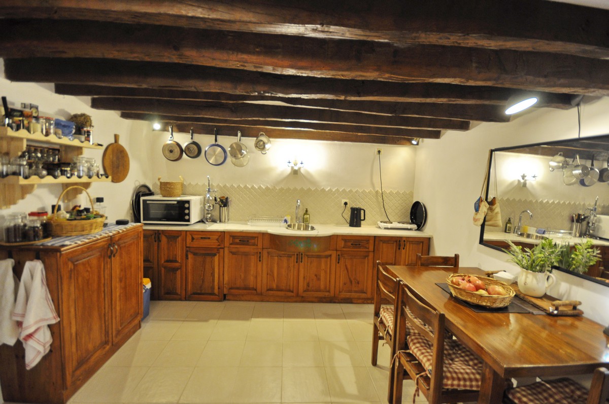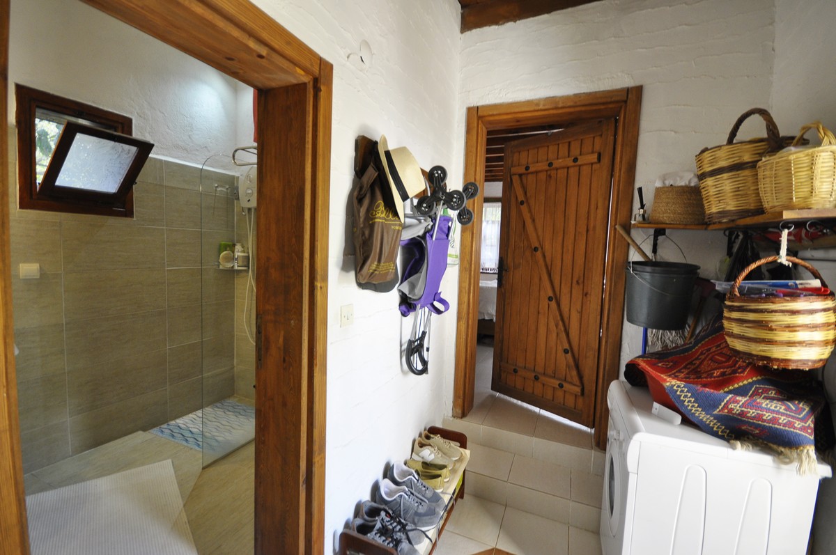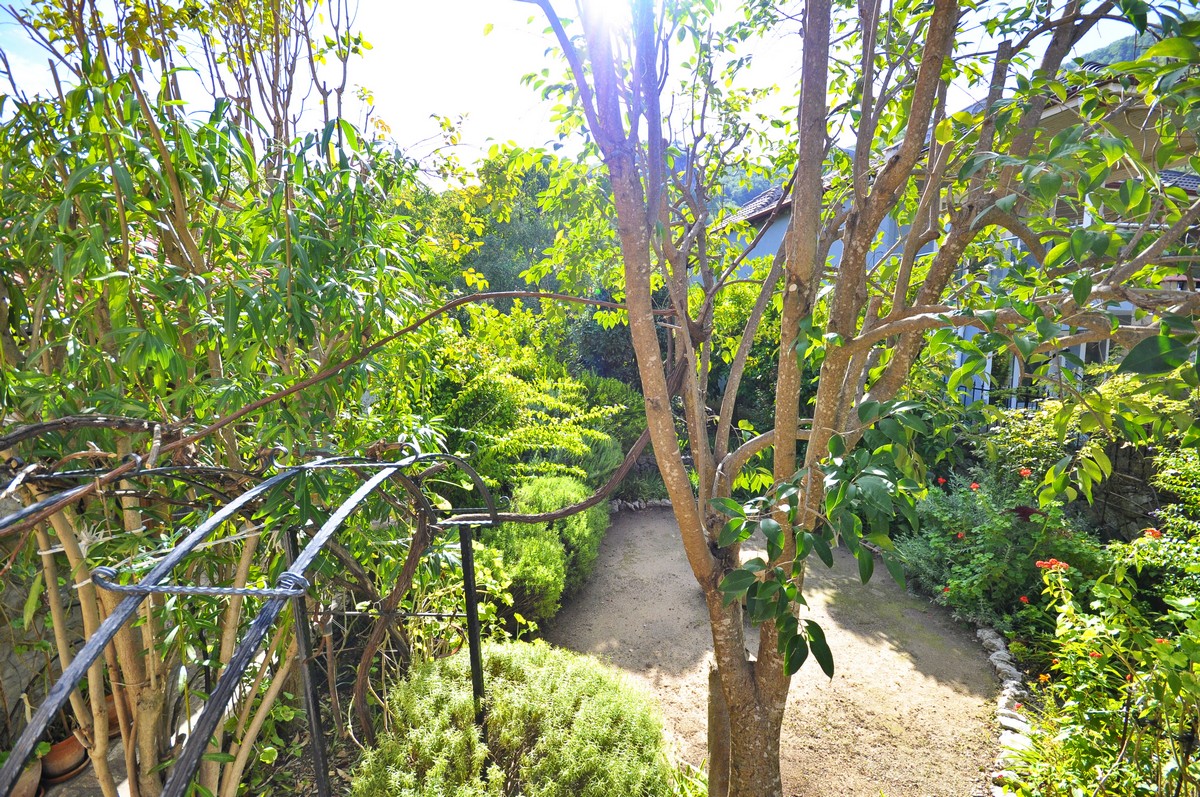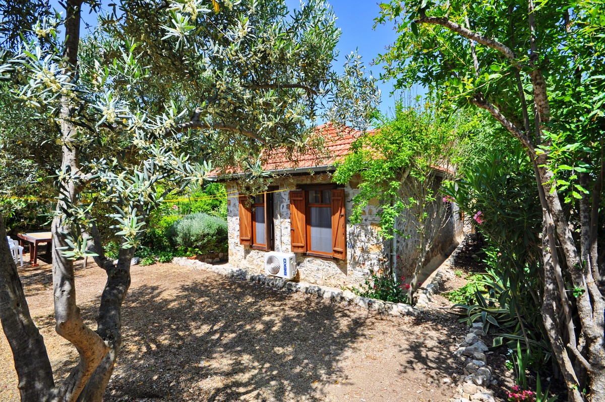 Ev, meyve ağaçları ve renkli çiçeklerle dolu özel bir bahçe ile çevrilidir; dinlenmek veya misafir ağırlamak için mükemmel bir alandır.