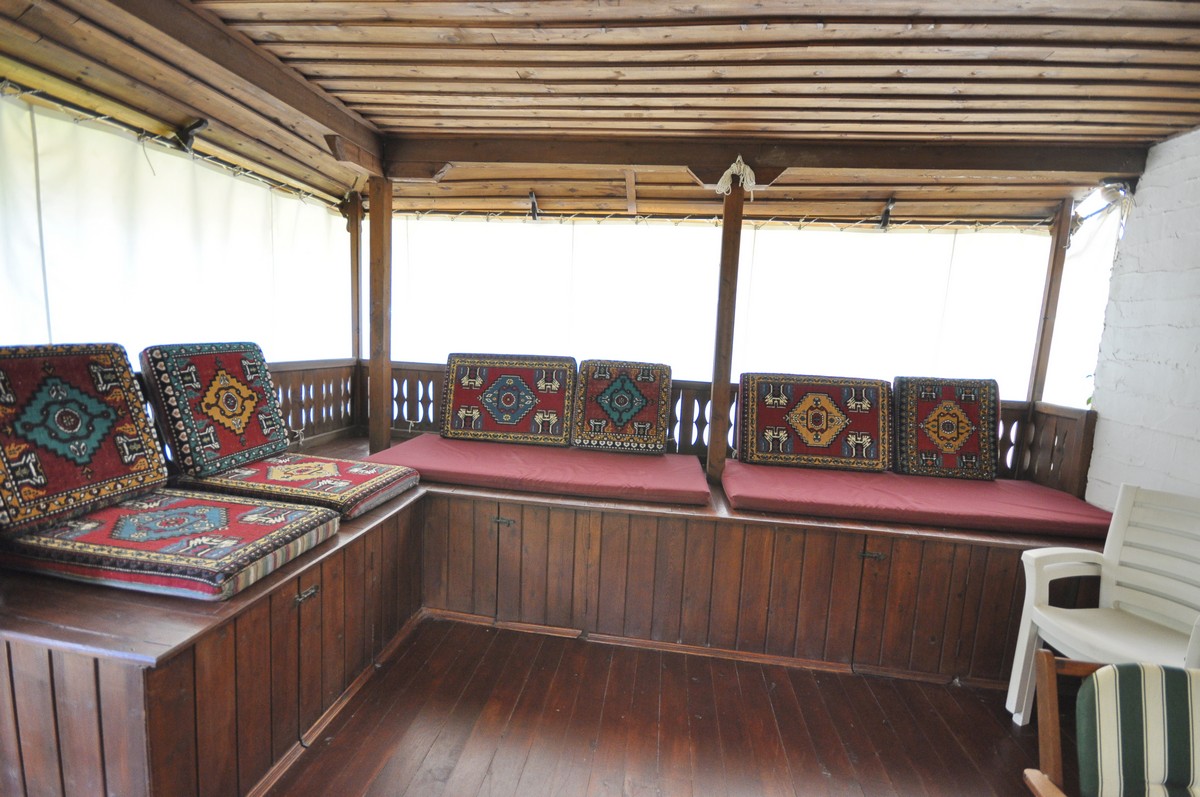 Dış taş merdivenlerden çıkıldığında, açık şöminesiyle büyüleyici bir atmosfere sahip geniş otantik balkon ve üçüncü yatak odası/oturma alanı sizi karşılıyor.