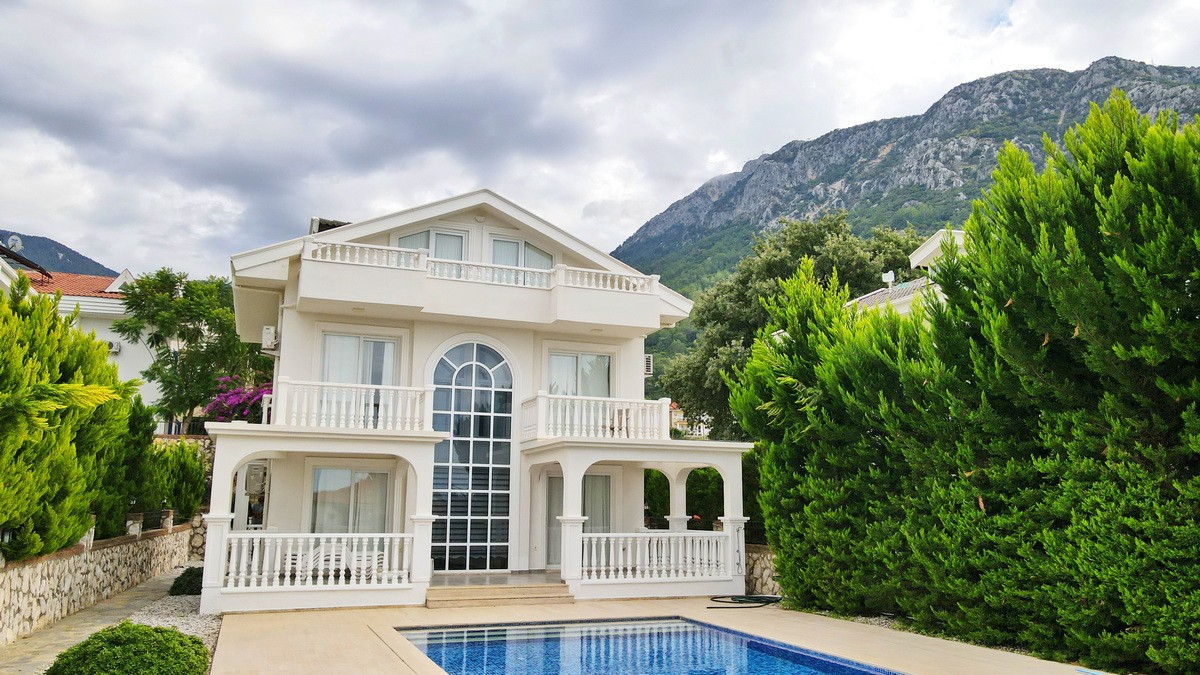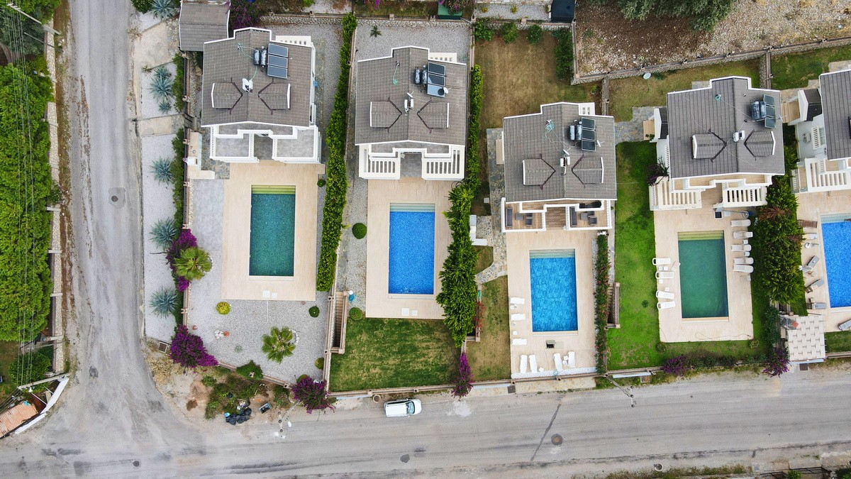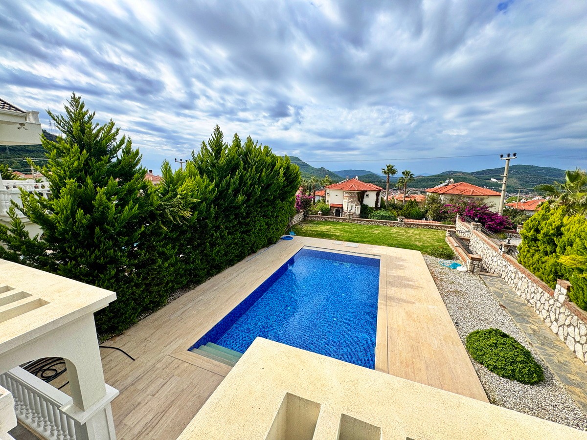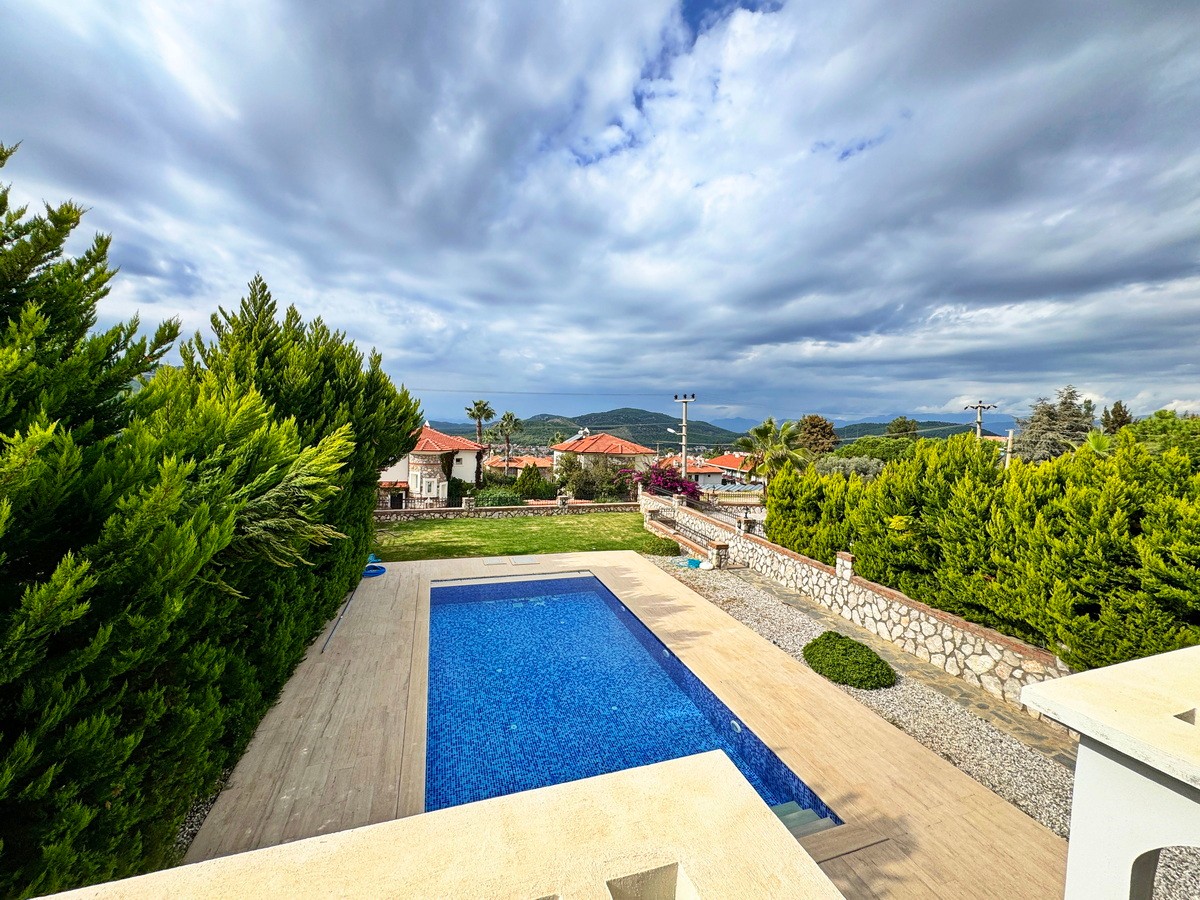 Tamamen özel peyzajlı bahçesi içinde yer alan villa, geniş yüzme havuzu ve dağ manzaralı terasıyla eşsiz bir yaşam alanı oluşturuyor.