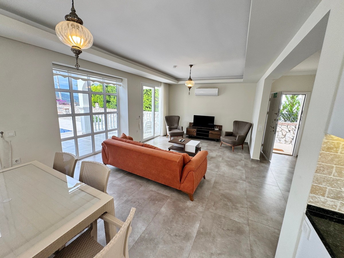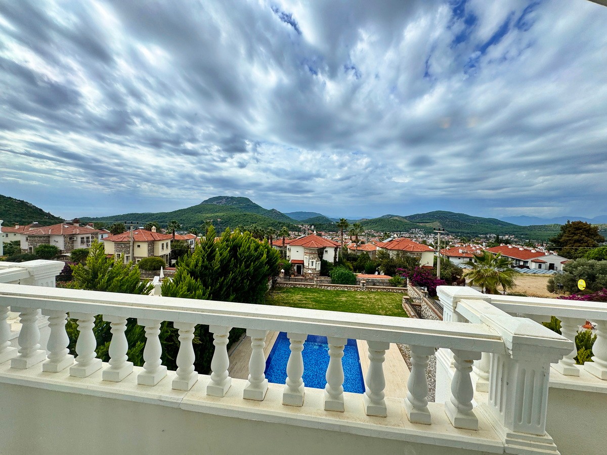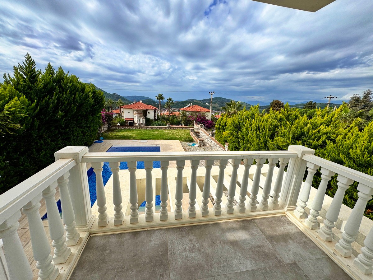 Tamamen özel peyzajlı bahçesi içinde yer alan villa, geniş yüzme havuzu ve dağ manzaralı terasıyla eşsiz bir yaşam alanı oluşturuyor.