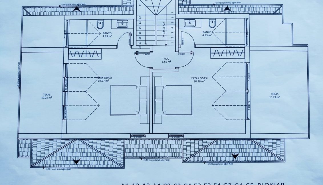 Çatı Katı: 2 adet yatak odası, her biri ebeveyn banyolu ve özel çatı teraslıdır.